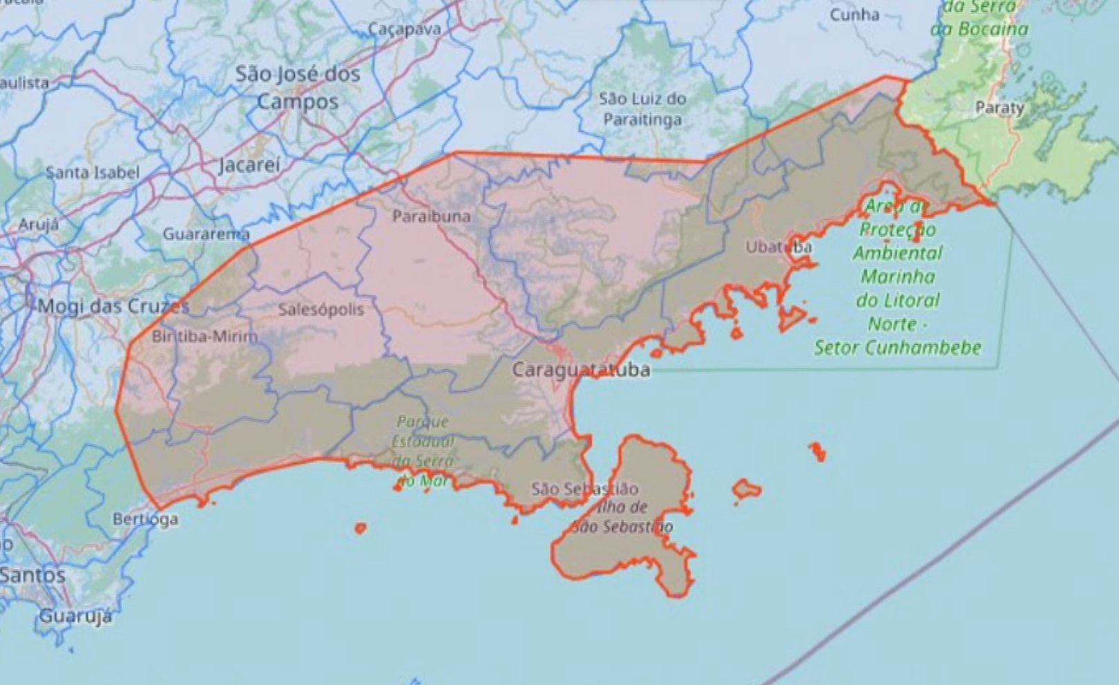 A área mais afetada é a que fica entre o Guarujá e Bertioga, com praias famosas da região sofrendo com inundações catastróficas e deslizamentos de terra.